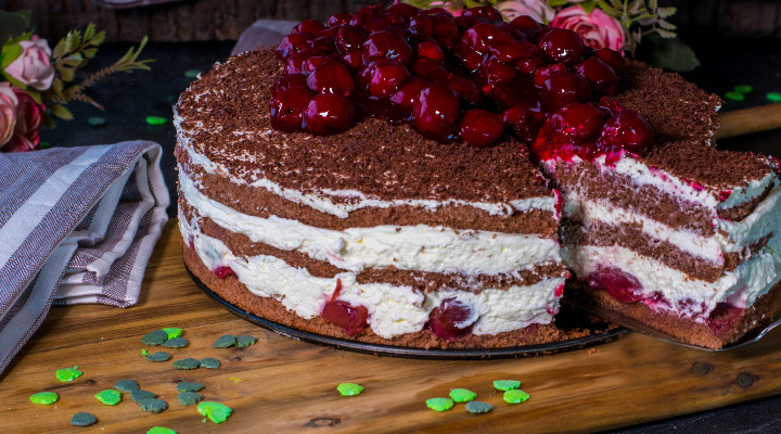 • O bolo floresta negra é uma receita originária da Alemanha e é tradicionalmente feito com uma combinação de chocolate, chantilly e cerejas.