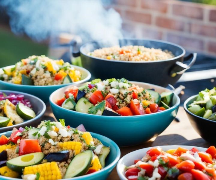 Quais são as opções de acompanhamentos vegetarianos para churrasco?
