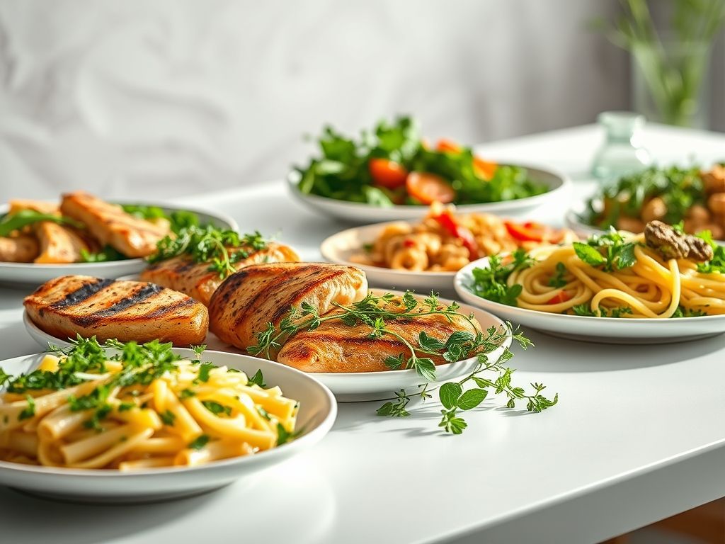 • Frango ao Forno com Ervas: Tempere os pedaços de frango com sal, pimenta, limão e orégano. Asse até que estejam dourados e suculentos.